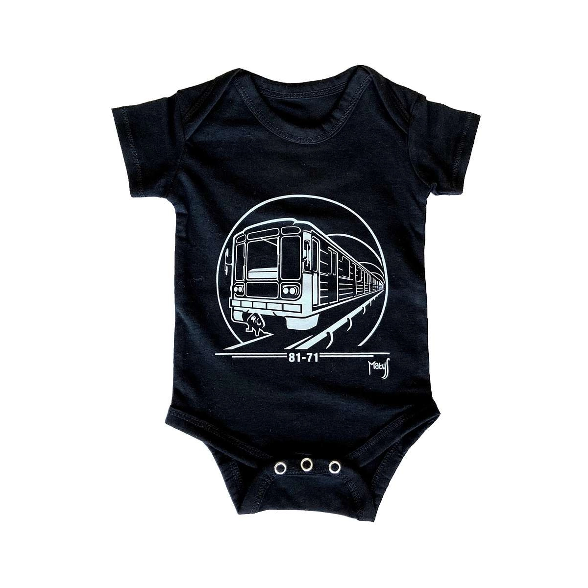 Od Prahy po Novosibirsk, od Petrohradu po Jerevan. Jeho nezaměnitelný zvuk přivádí do mdlob nejednoho fanouška podzemních drah. To je ikonická souprava metra typu 81-71. Vyráběná v několika sériích v Mytiščinském strojírenském závodu nedaleko Moskvy. Pražské metro zahájilo provoz 9. května 1974 se sovětskými soupravami Ečs. Pro nově budovanou trasu A, veřejnosti otevřenou v roce 1978, která byla sklonově náročnější, však soupravy Ečs po trakční stránce nevyhovovaly. Na základě požadavků pražského dopravního podniku byl v Mytiščinském strojírenském závodu nedaleko Moskvy vyvinut typ 81-71, který byl - kromě Prahy - dodáván i do ostatních socialistických států sdružených v RVHP. Stal se z něho doslova světoběžník! Soupravy metra typů 81-71, nebo jejich pozdější modifikací, byly dodávány kromě Prahy do následujících měst: Varšava, Budapešť, Sofia, Kyjev, Dnipro, Charkov, Tbilisi, Jerevan, Baku, Taškent, Minsk, Petrohad, Moskva, Nižnij Novgorod, Samara, Jekatěrinburg a Novosibirsk. Jedna souprava se v netradičním, zeleno bílém barevném schématu dokonce krátce objevila v íránském Teheránu. Na dlouhá léta se stala symbolem podzemních drah měst východního bloku. Navíc díky pronikavému a nezaměnitelnému zvuku, byly projíždějící soupravy slyšitelné už z přístupových eskalátorů nebo přestupních chodeb. Bohužel či bohudík, nic netrvá věčně a soupravy typu 81-71 postupně uvolňují místo modernizovaným modifikacím (např. v Praze) nebo zbrusu novým elektrickým vozům. Kojenecké body s krátkým rukávem a zapínáním na cvočky v rozkroku. Body má na ramínkách praktické překřížení pro snadnnější oblékání. Materiál: 96% česaná bavlna, 4% elastan Gramáž: 175 g/m2 Barva: černá Přední strana trička: Potisk metra – sítotisk světle šedý Zadní strana: Potisk malé logo Locomotif – sítotisk světle šedý Velikostní tabulka je umístěna v obrázcích.