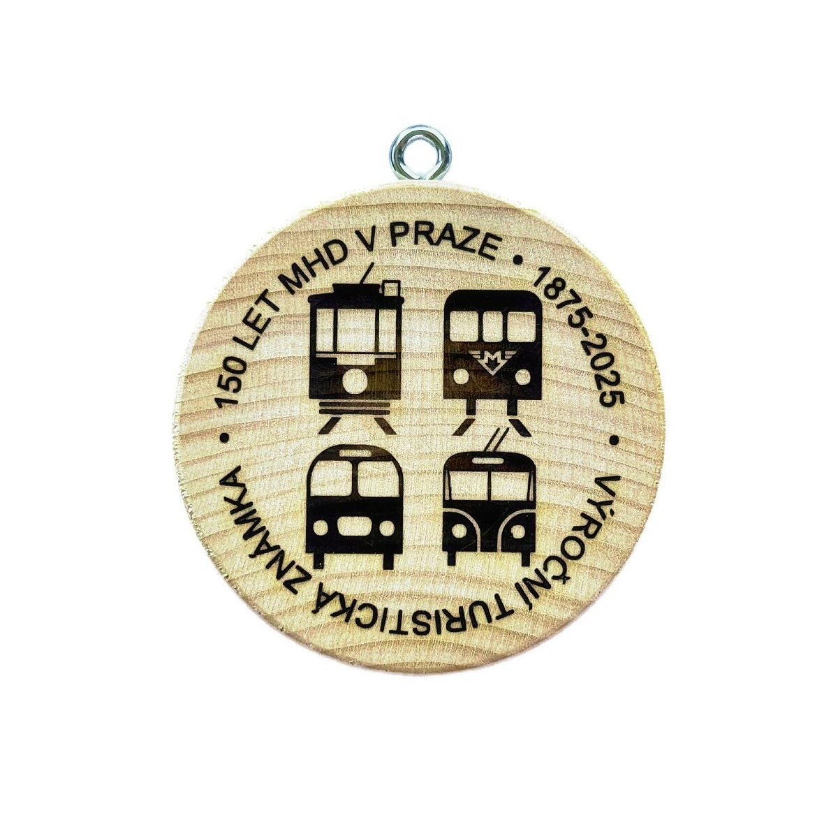 Oboustranná dřevěná výroční turistická známka s vypalovaným motivem. Průměr: cca 6 cm Tloušťka: cca 1 cm