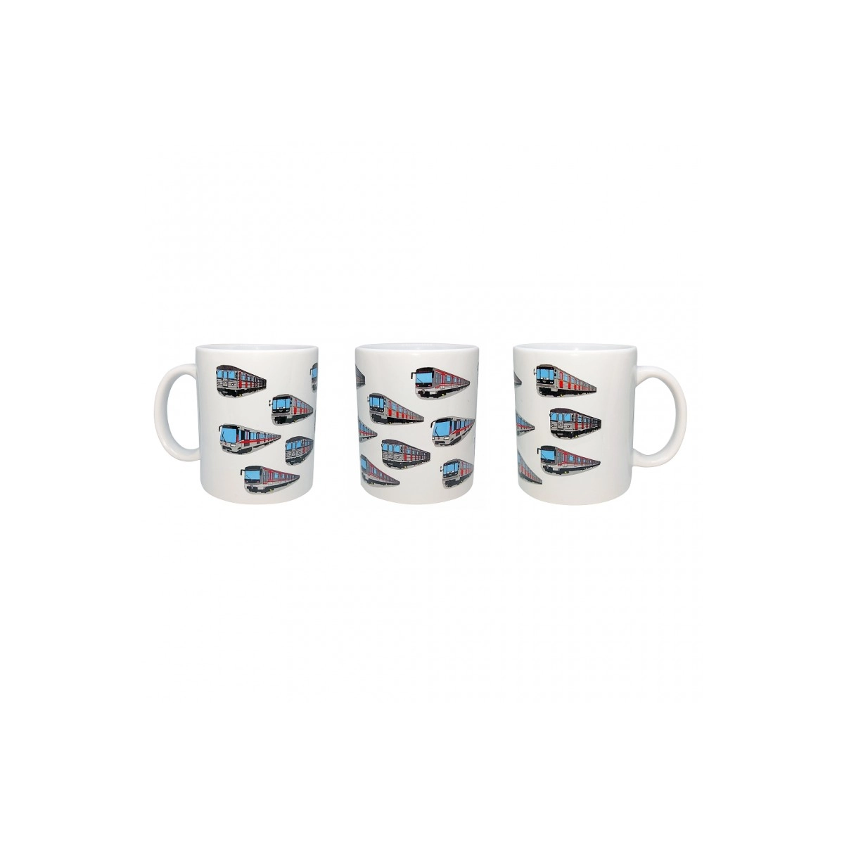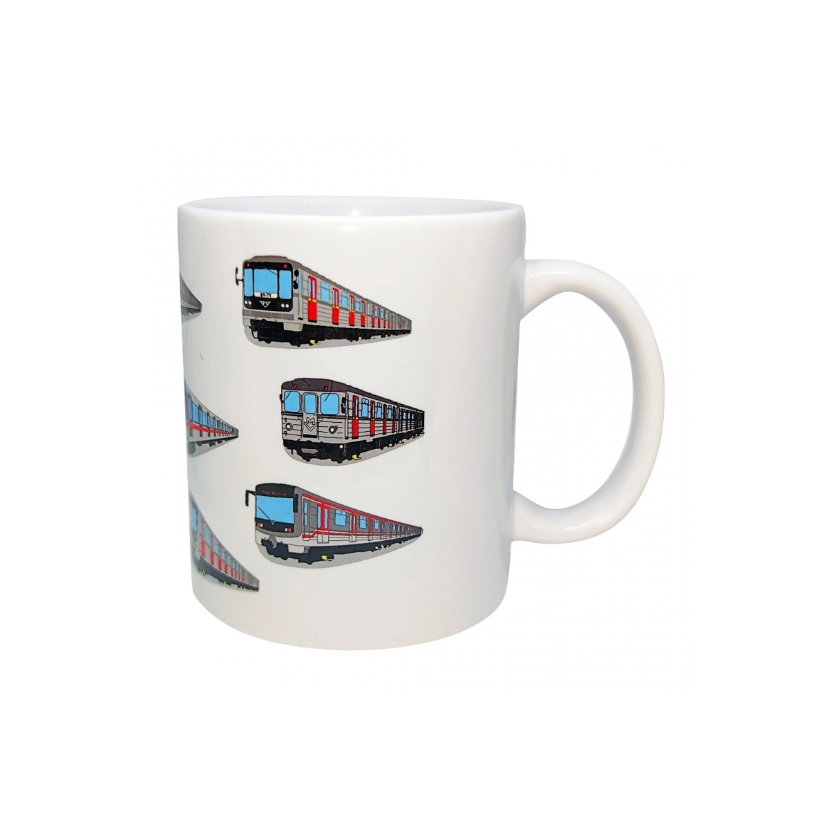 Keramický hrnek s motivem schématu pražského metra a budoucí linky metra D.