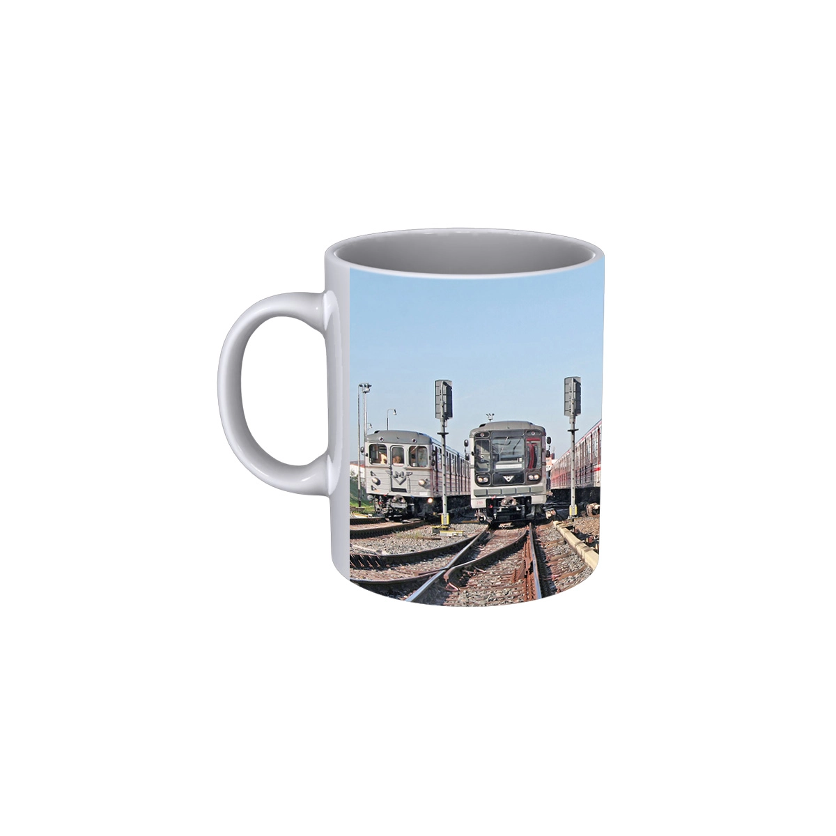 Keramický hrnek s motivem všech typů souprav pražského metra: Ečs, 81-71, 81-71M a M1. Více info