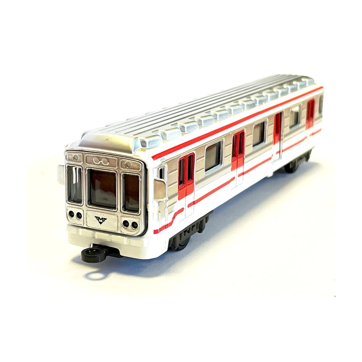 Originální hračka vytvořená ve spolupráci výrobce s hlavním městem Prahou a Dopravním podnikem hlavního města Prahy. Délka vozu je 16 cm. Tento jedinečný kousek se určitě stane oblíbenou hračkou všech malých nadšenců městské hromadné dopravy nejen v Praze. Navíc lze jednotlivé soupravy jednoduše zapojit za sebou. Jedny dveře metra je možné otevřít, pomocí páčky ve spodní části vozu. Jezdí na zpětný chod. Metro má rozchod kol cca 1,5 cm. Předobraz hračky: souprava 81-71M Délka vozu je 16 cm Materiál: kov a plast Vhodné pro děti od 3 let Výrobce: RAPPA Balení: krabička