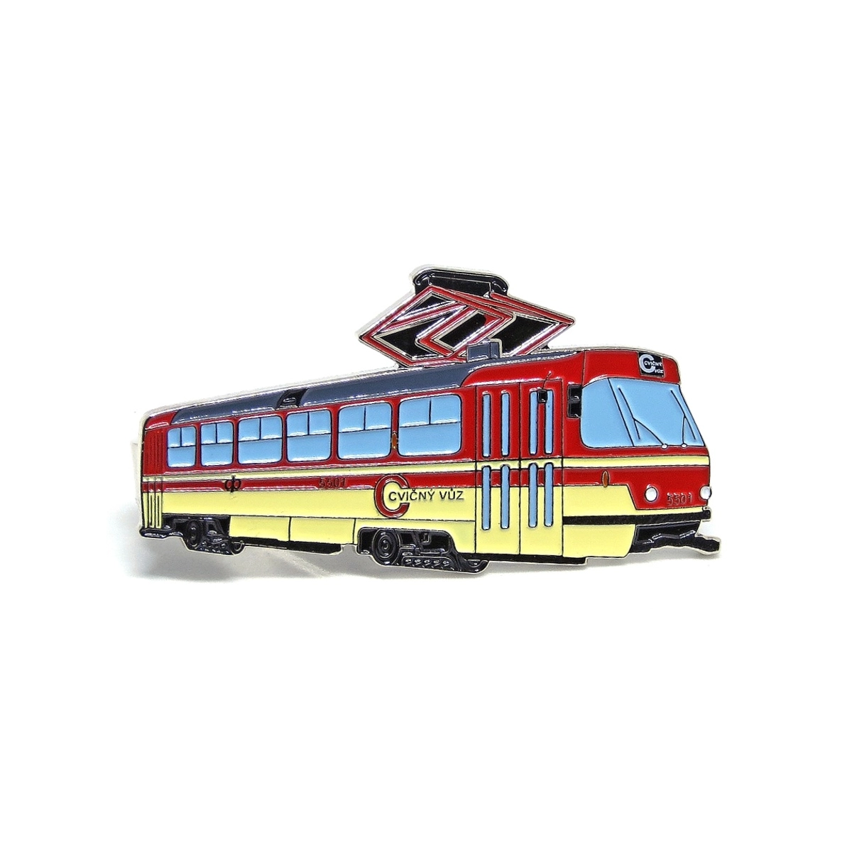Kovová kravatová spona s motivem tramvaje Škoda 52T.