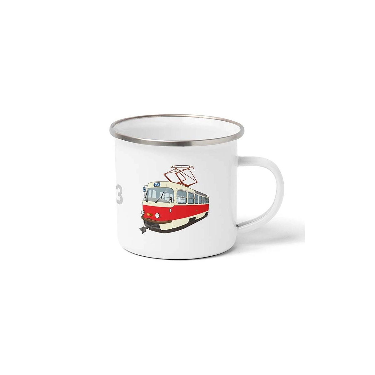 Plechový hrnek s motivem historické tramvaje Tatra T2.