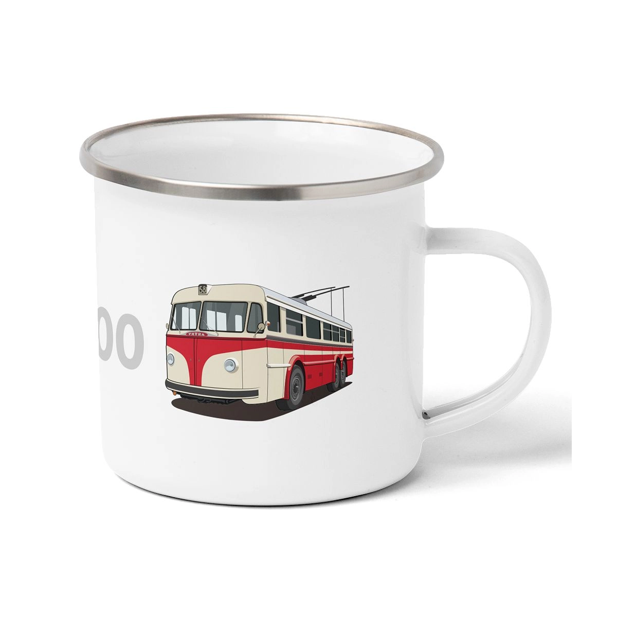 Plechový hrnek s motivem tramvaje ČKD Tatra T3 ev. č. 7001.