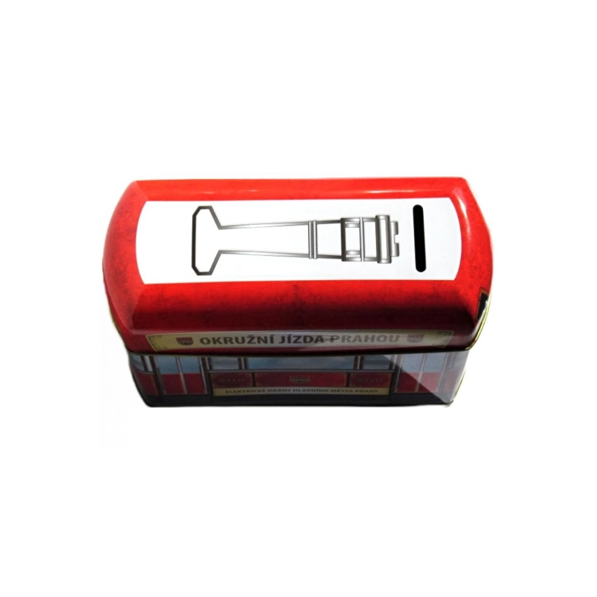 Připomeňte si první pražskou historickou tramvajovou linku, která pod číslem 91 spojovala Výstaviště s Muzeem MHD! Plechová kasička s víkem a otvorem pro vhazování mincí. Výrobek není vhodný pro styk s potravinami. Materiál: kov Rozměry: cca 18 × 13 × 8 cm