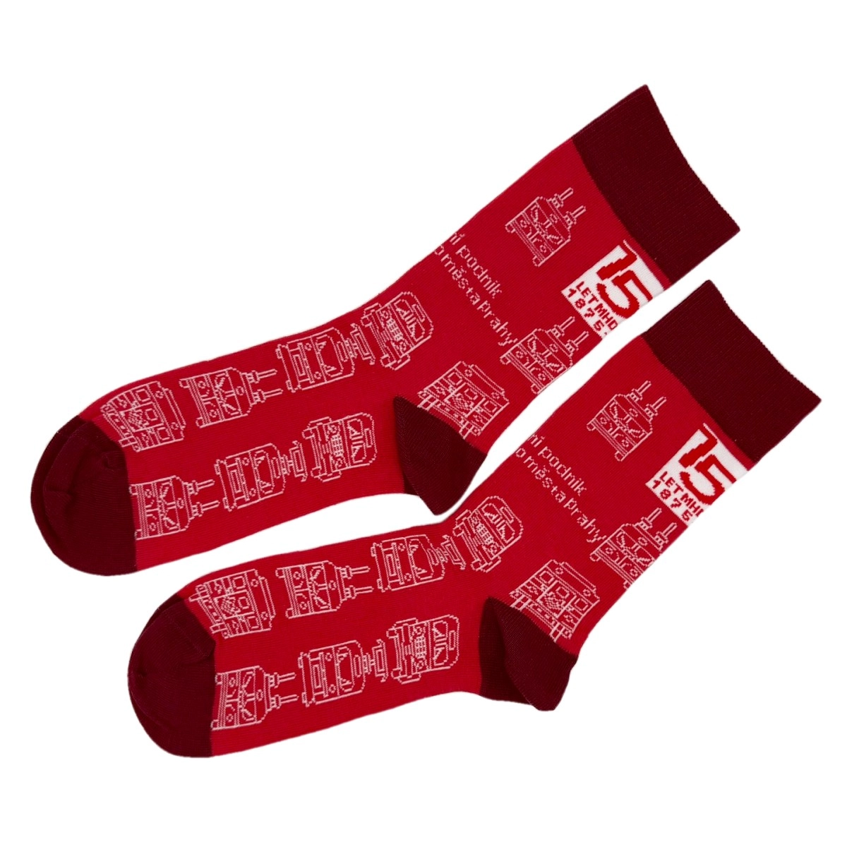 Ponožky s vyšitým motivem kultovní mazací tramvaje.