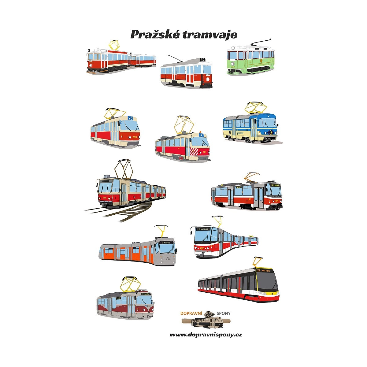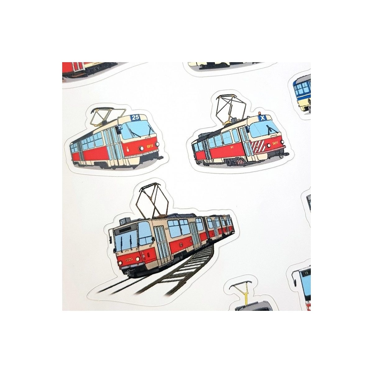 Barevné vylupovací samolepky pražských tramvají na archu formátu A5. Výrobek není vhodný pro děti do 3 let. Typy tramvají: